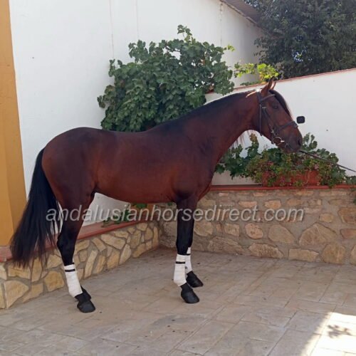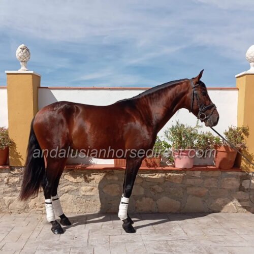 Bandolero SIF * 12/03/2022 is an honest, pretty PRE stallion, unblemished and open-minded. He has grown up at the breeder’s fields in groups in utter nature and wide fields. He is now being gradually trained without pressure, and is ridden with a snaffle; he has a very good attitude to work, responding to fine voice commands and body language. Apart, he has been trained from the ground from the start, which builds up the trust between him and humans.