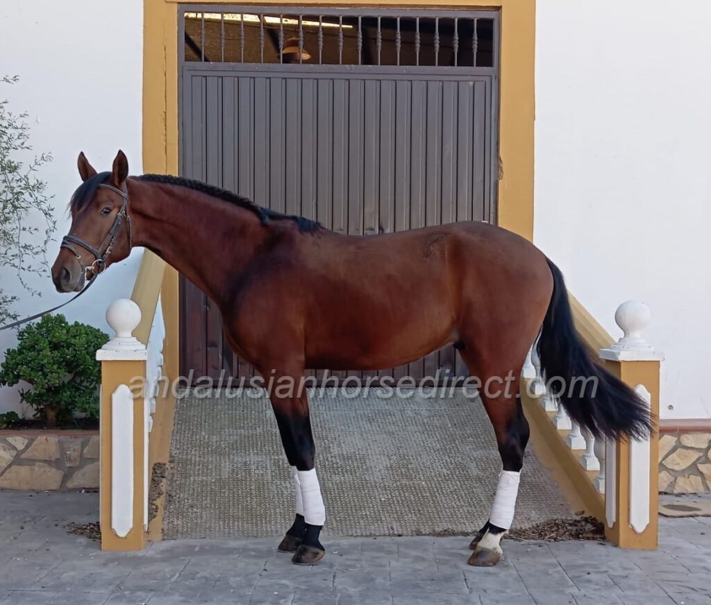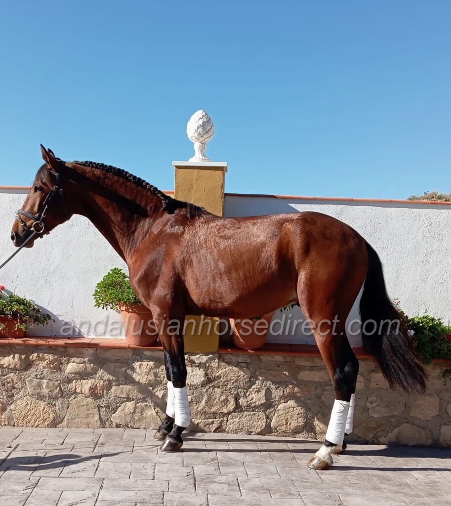 His sire Alfajor Torreluna is a son of the multiple Spanish Champion Yaco de Torrelunahttps://grupopre.com/vendidos/yaco-de-torreluna/ (three-time SICAB Champion, Calificado, Mejorante, and ANCCE-recommended dressage sire). Video here: https://youtu.be/55hoK93pgJ0 . Alfajor’s dam Gitana CLII (Botijo’s granddam) is a calificada broodmare with prestigious Escalera bloodlines, including the Mejorante stallion Hebrero XIX http://yeguadaescalera.com/wordpress/sementales/ .