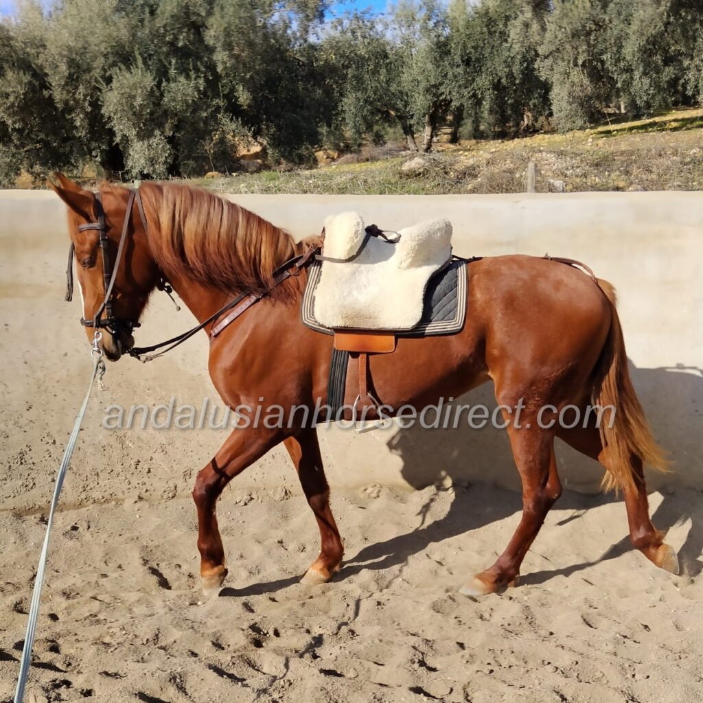 She was bred privately and raised in a natural herd environment outdoors, providing her with a solid foundation for healthy development. Candela is very willing to learn, attentive and cooperative. She has been started under saddle in a gentle and age-appropriate way and has already a solid basic training accordi9ng to her age. She hacks out, both alone and in company. Her movements are fluid, elastic combined with a natural rhythm, making her an interesting prospect for sport as well.