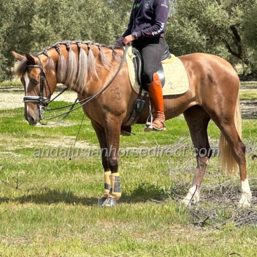 Cohiba has been bred by her current owners and raised under optimal conditions. Her sire is the PRE stallion Valedor AR, (see pictures and pedigree!) contributing type, expression, and movement quality. Cohiba is not registered herself but there is a pedigree on both sire and dam’s side.