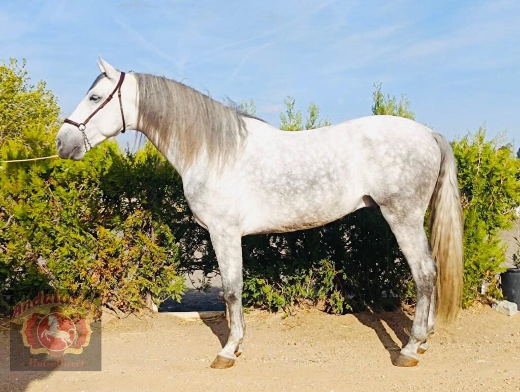*CONFUCIO* 13/03/2020 172 cms! A beautiful PRE Gelding with an exceptional temperament with very good movement, he was officially aproved for breeding but proved to have amazing ability as a ridden horse. He is elite bred and pure Yeguada Militiar blood. His training has been done classically without pressure he has walk. trot and canter, some lateral work and a very good horse for hacking, he has also attended many Ferias and Romerias so he also travels really well.