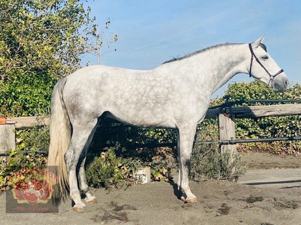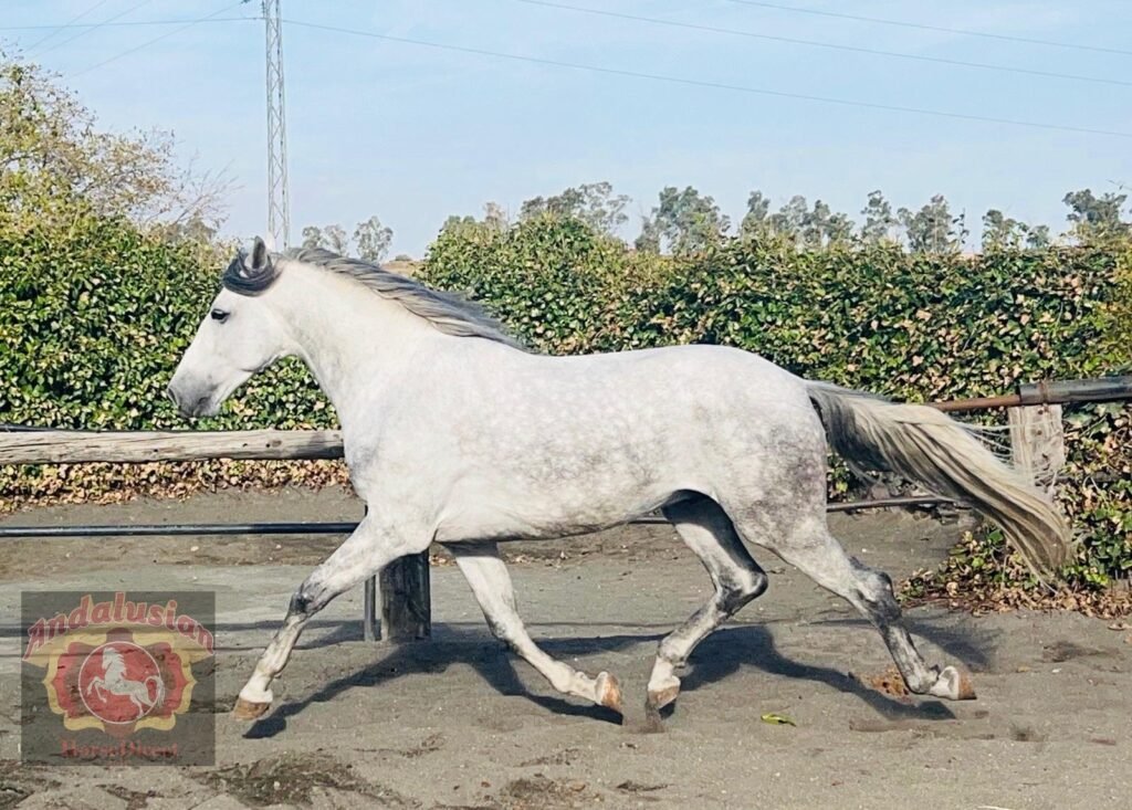 *CONFUCIO* 13/03/2020 172 cms! A beautiful PRE Gelding with an exceptional temperament with very good movement, he was officially aproved for breeding but proved to have amazing ability as a ridden horse. He is elite bred and pure Yeguada Militiar blood. His training has been done classically without pressure he has walk. trot and canter, some lateral work and a very good horse for hacking, he has also attended many Ferias and Romerias so he also travels really well.