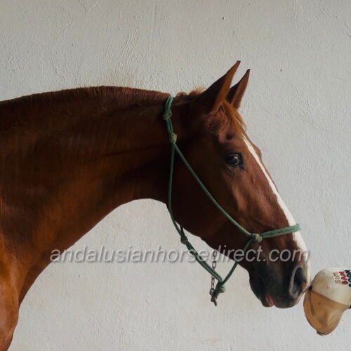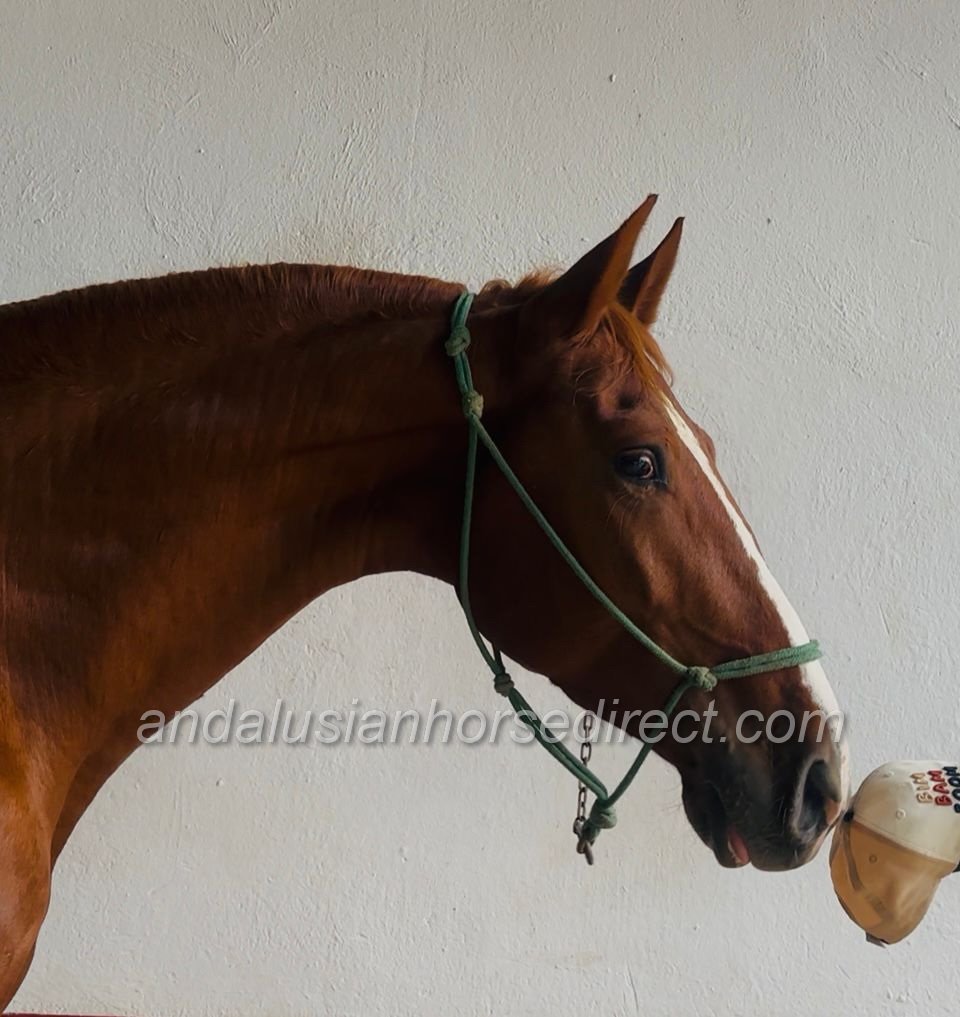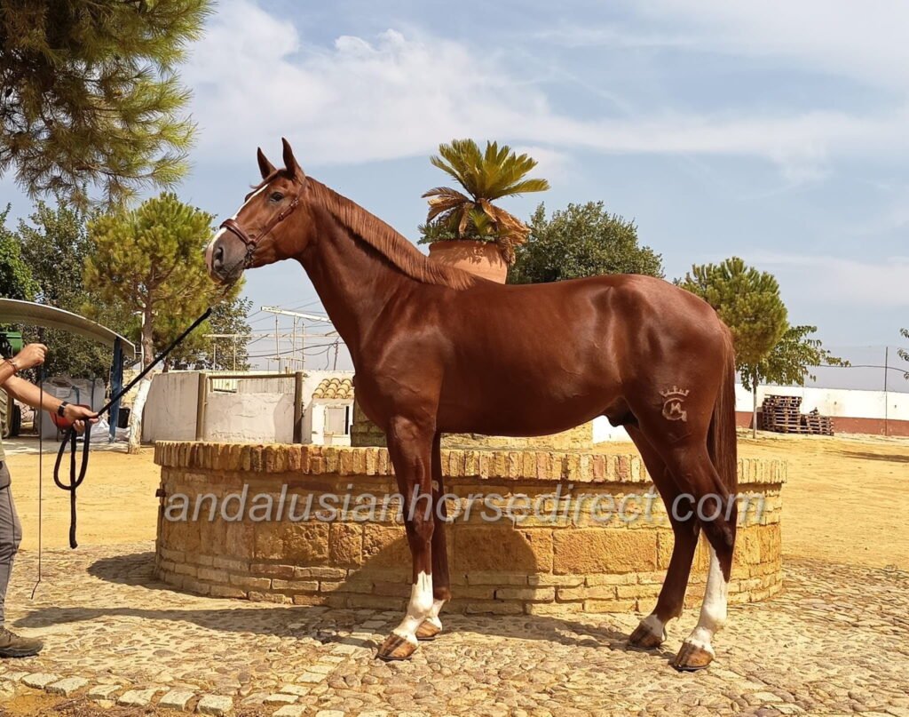 Destino YG, born on 15/03/2022, is an exceptionally tall and elegant young PRE stallion with a striking chestnut coat and outstanding movement quality. His impressive walk, elastic trot and powerful canter already make him a true eye-catcher at his young age.