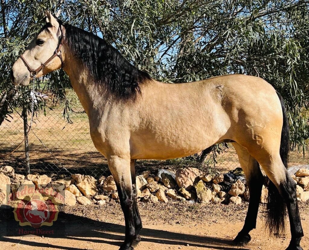 *DIAMANTE VLR* 28/03/2014 is a beautiful PRE registered buckskin stallion, he has a wonderful soul and is a perfect ladies horse he has basics in the school including laterals and he is a very safe hacking horse.