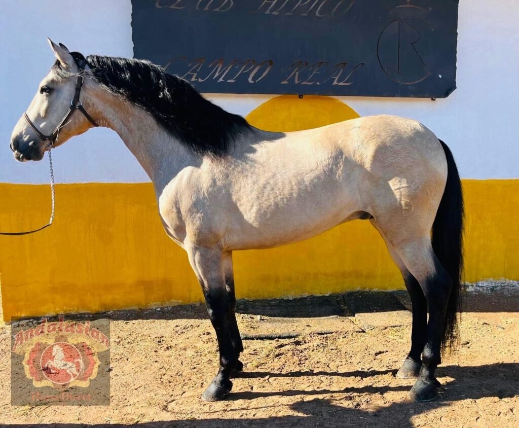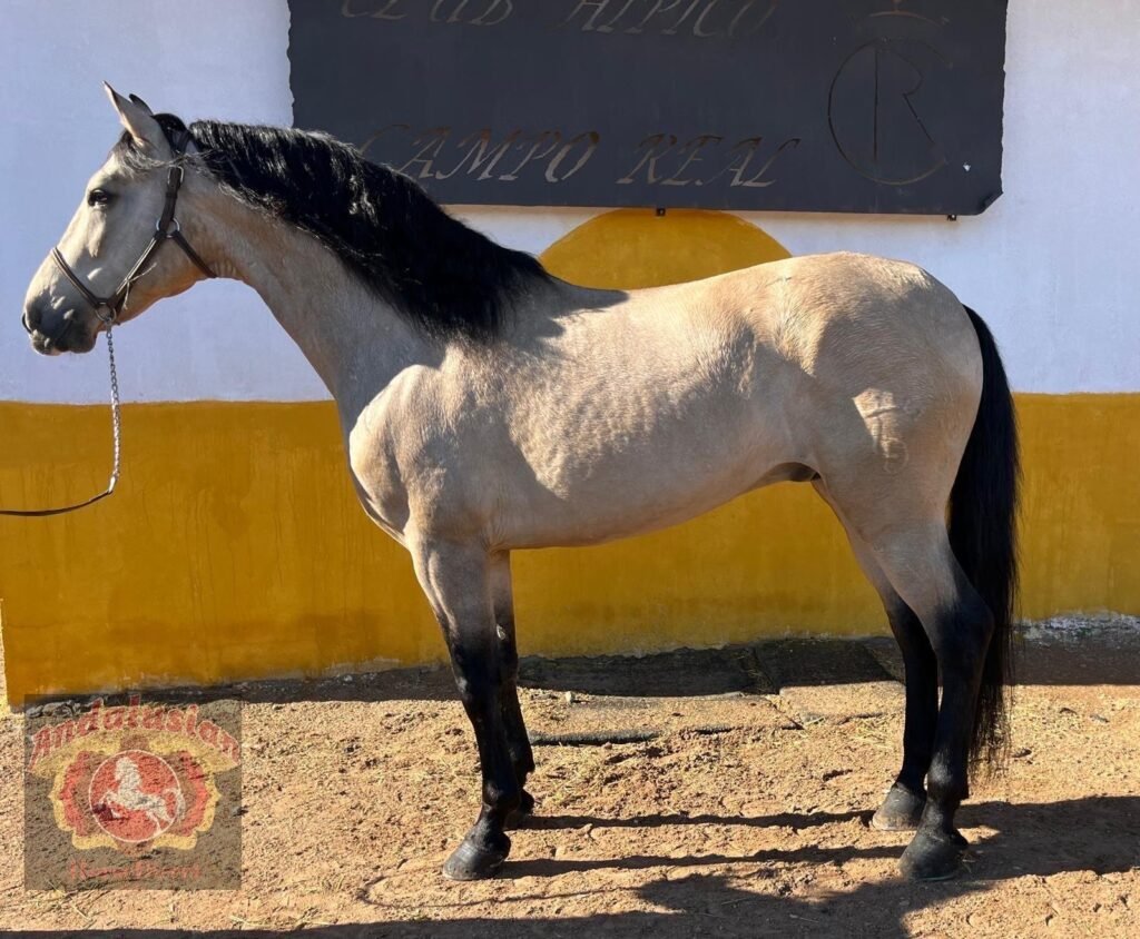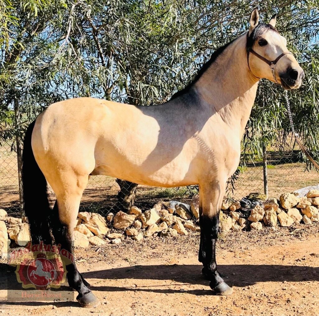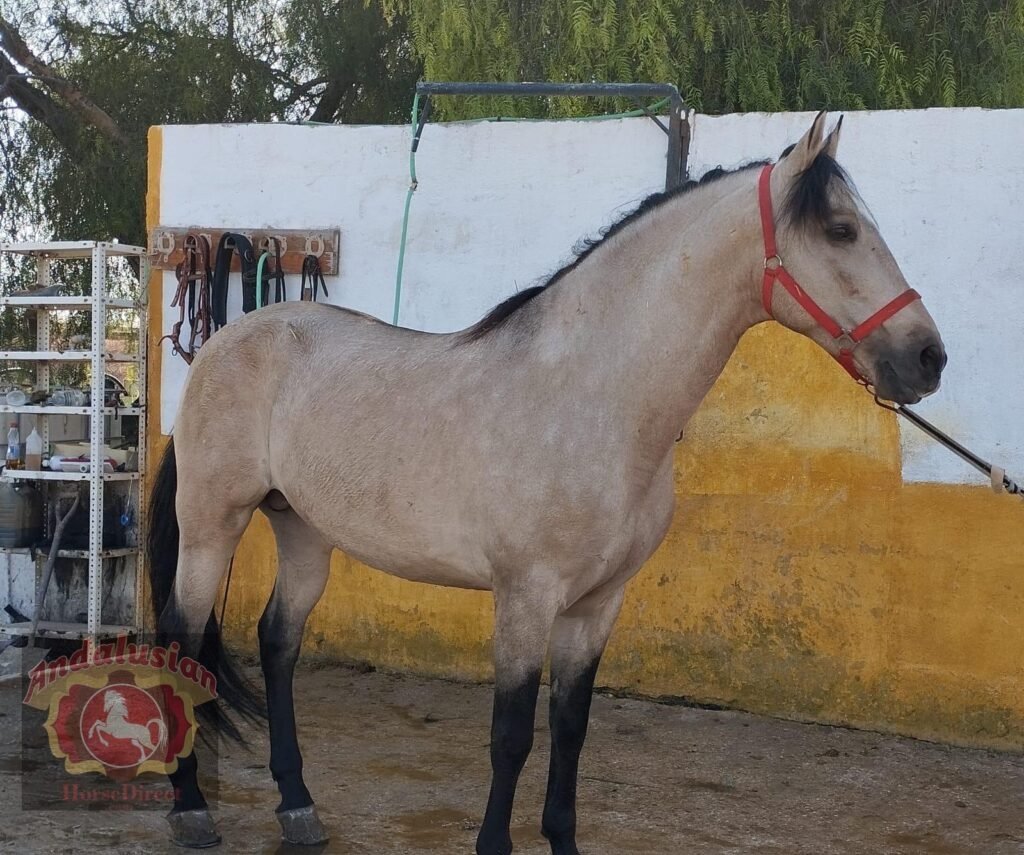 *DIAMANTE VLR* 28/03/2014 is a beautiful PRE registered buckskin stallion, he has a wonderful soul and is a perfect ladies horse he has basics in the school including laterals and he is a very safe hacking horse.