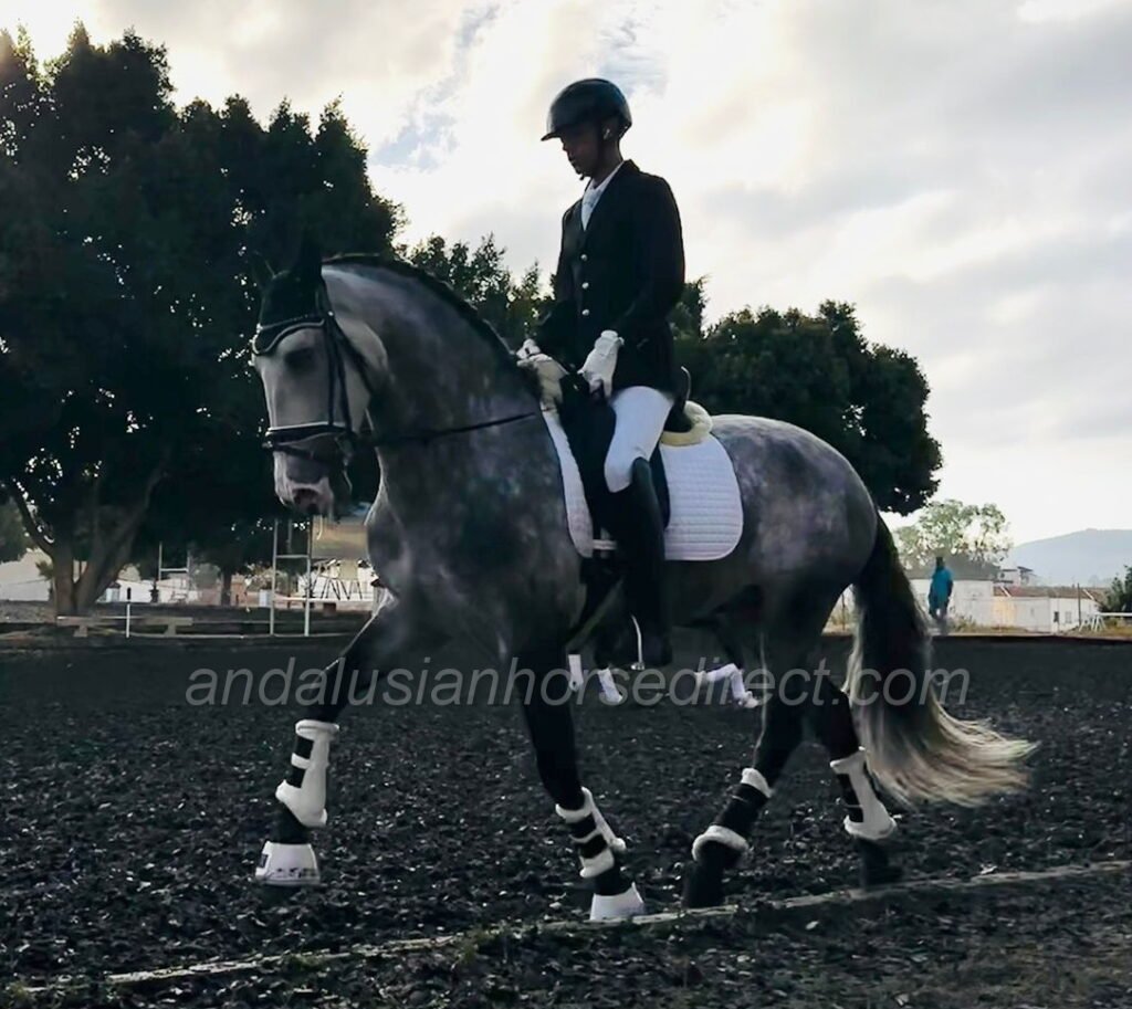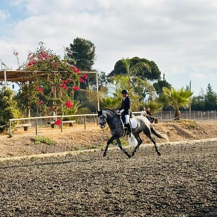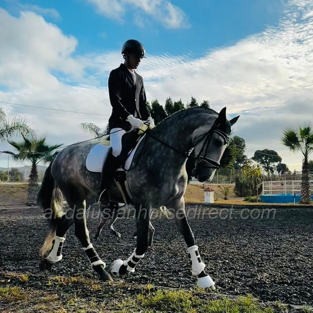 JUDIO TB * 18/04/2021 is a well built harmonic PRE Gelding, dark dapple grey, wonderful gaits. Very trainable mind, a wonderful horse for dressage he has now competed twice and got a 2nd and a first! All on a snaffle, he also hacks out and is a smart horse to be brought forward. His blood lines are based in Romero Benitez, Granda Losada and Marin Garcia.