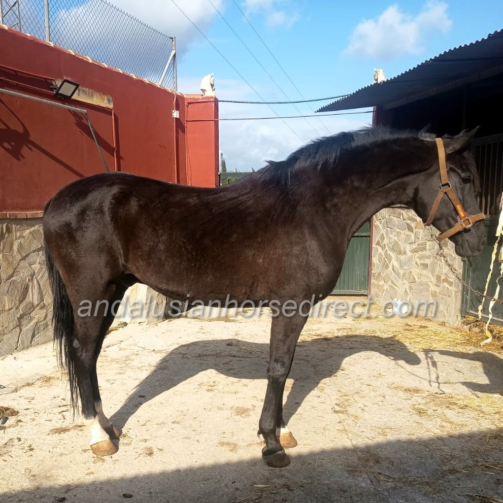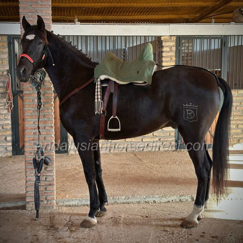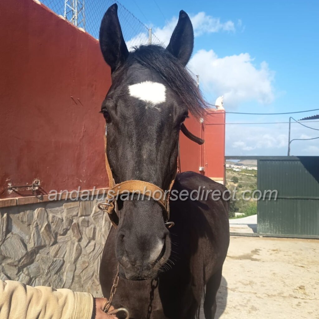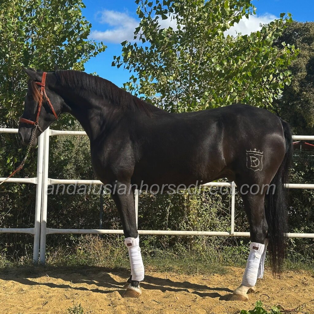 Lorongo, born on 30/05/2020, is a remarkably tall, jet-black Andalusian gelding with a big heart and a wonderful, easy-going character. He is straightforward to handle, pleasant to ride, and perfectly suited for both leisure riders and those with sporting ambitions.