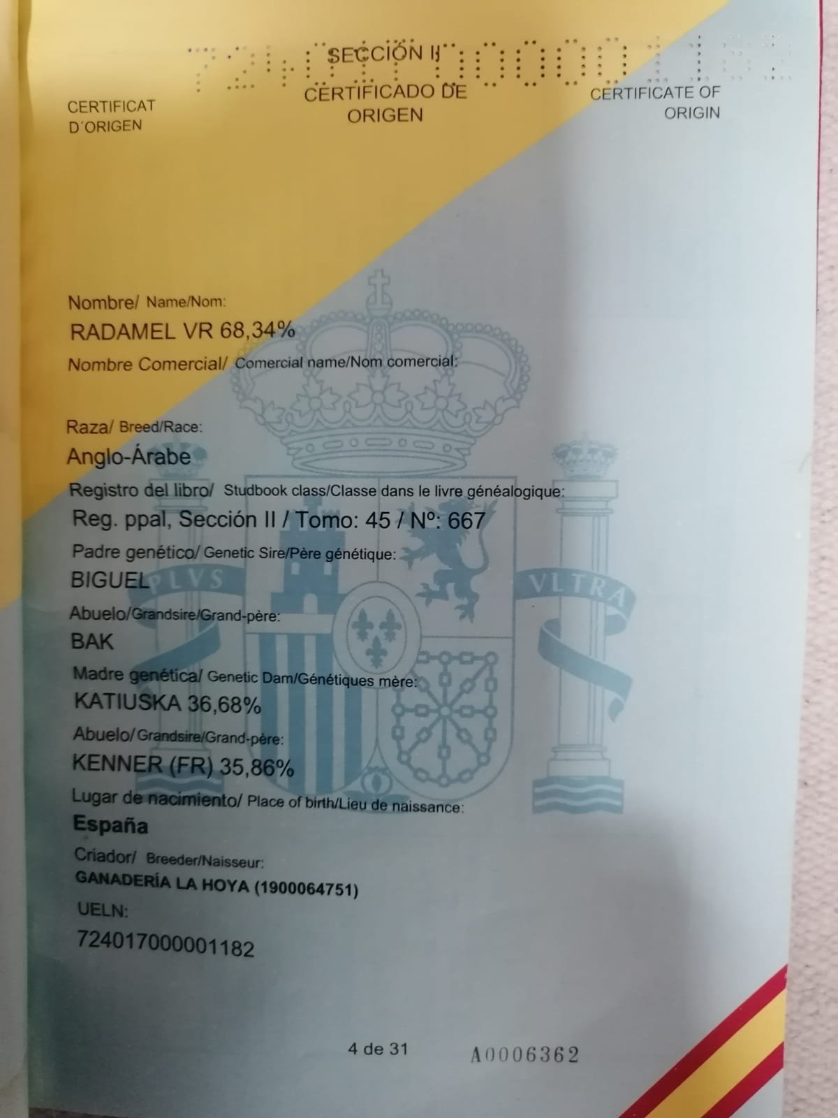 *Radamel VR* 01/04/2012 Is a registered Anglo Arab, he is a schoolmaster gelding in working equitation, He has very automatic changes, laterals, halfpass, turn on the haunches and more his ridden work is very established and he is an amazing horse for any rider to enjoy have fun and learn a more advanced way of riding. Radamel is also a very good hacking horse on the roads in traffic and in the country side, tracks and mountains alone or in company.