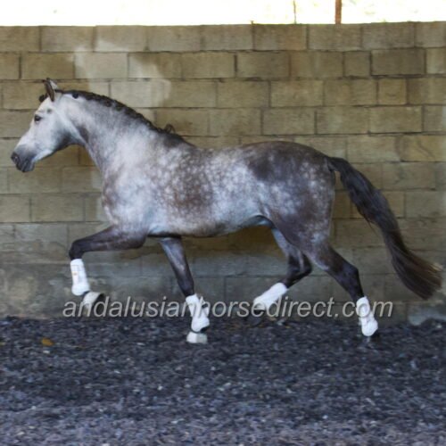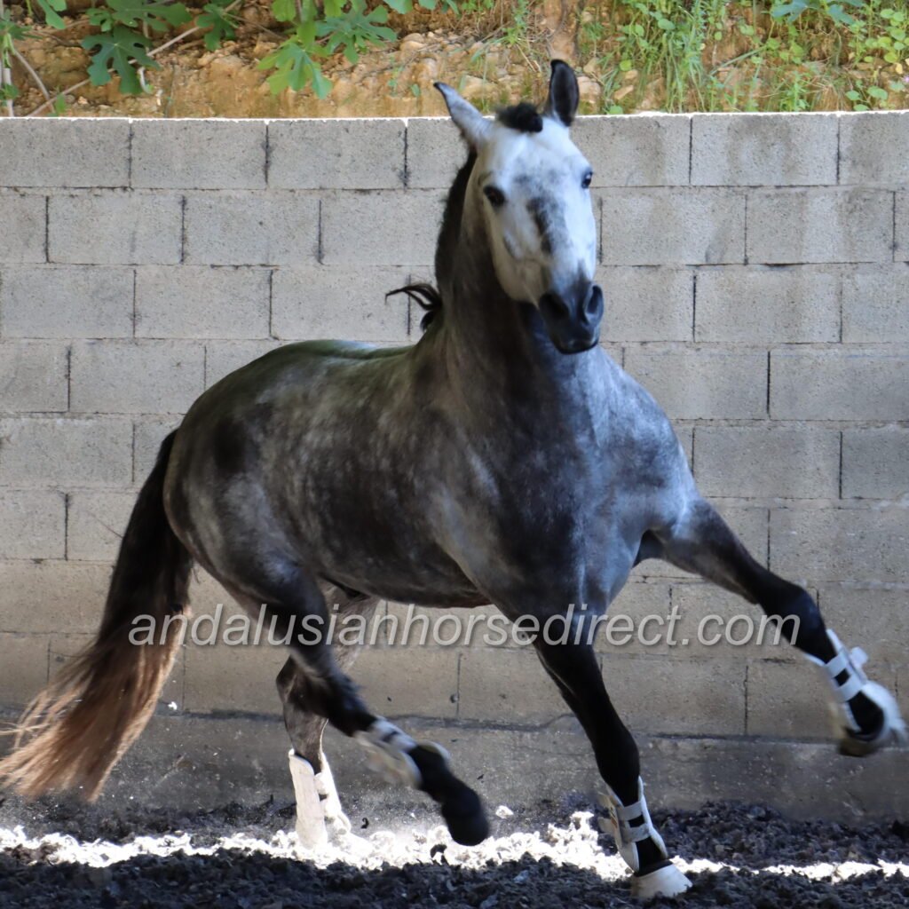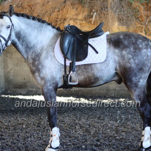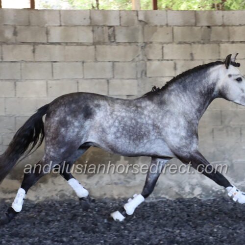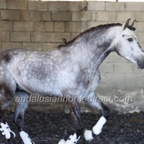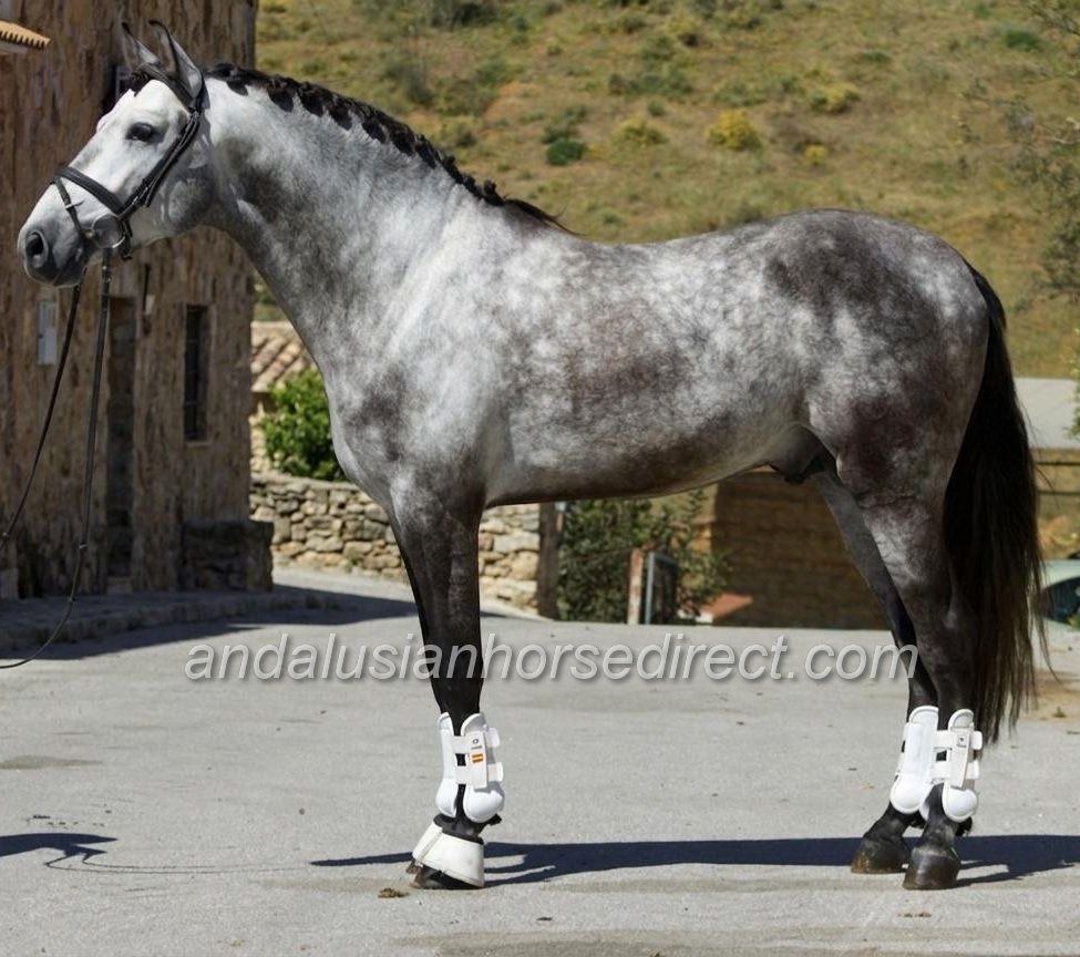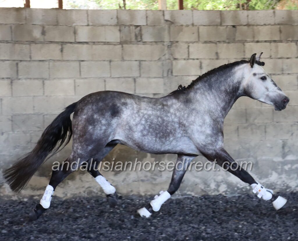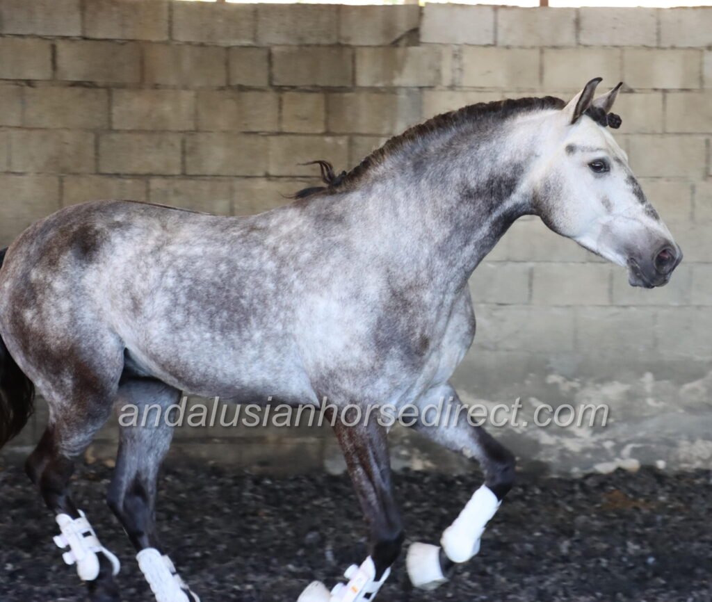 Resuelto SB IV 25/02/2021 is a stunning dapple grey PRE stallion, sired by the impressive dark buckskin Galante LX, with an interesting colour-breeding background.