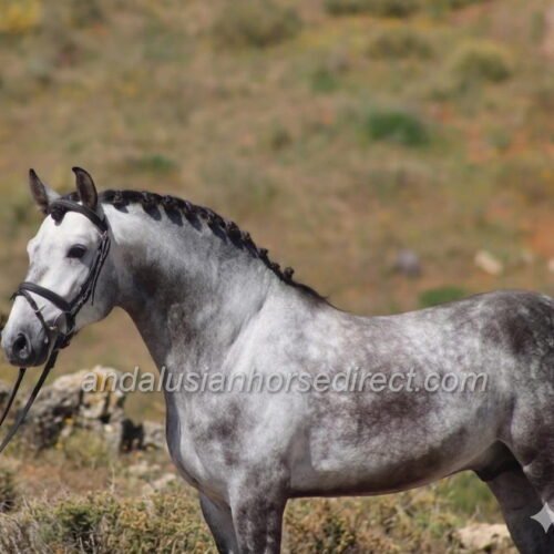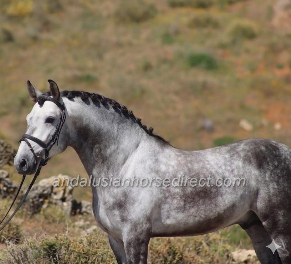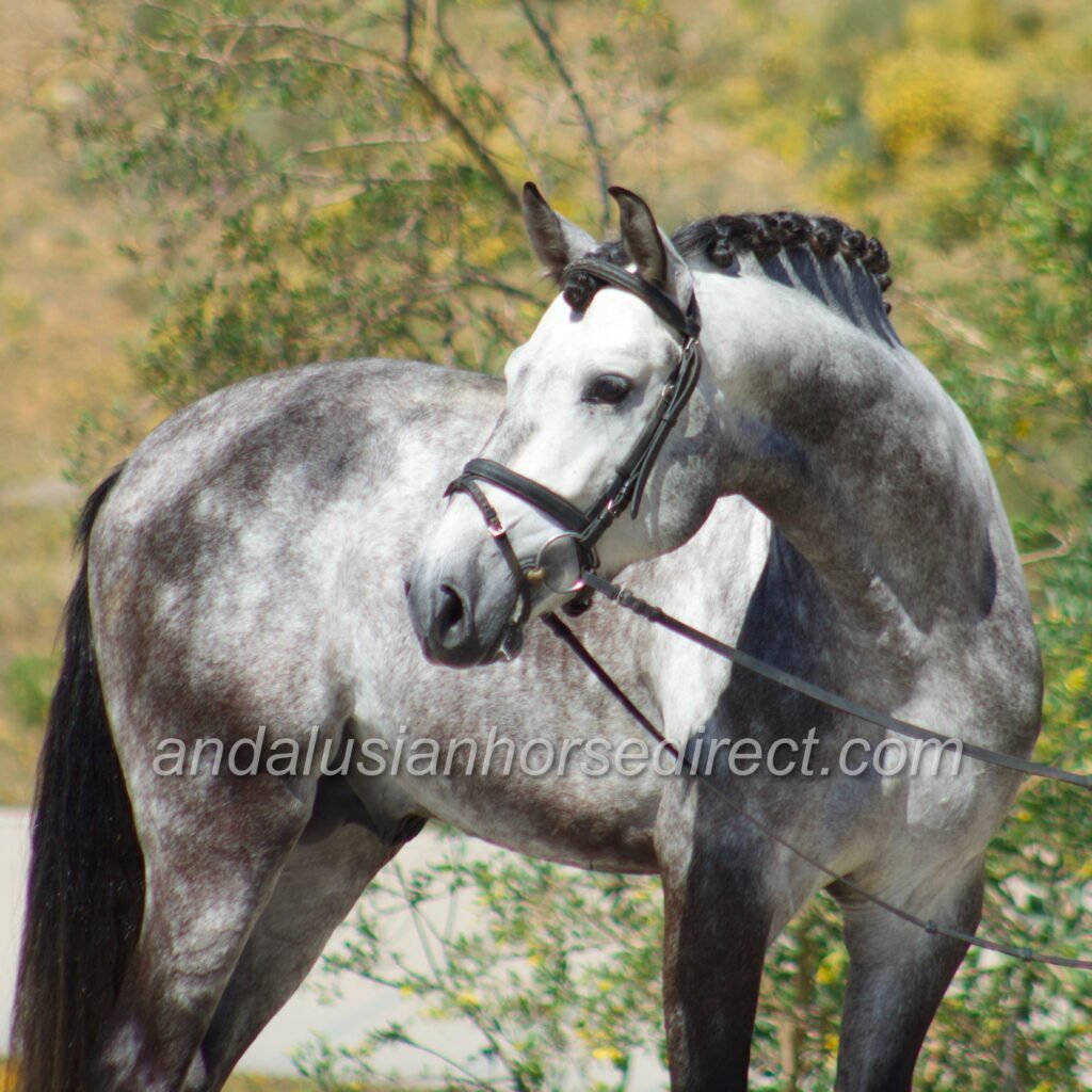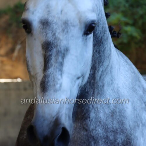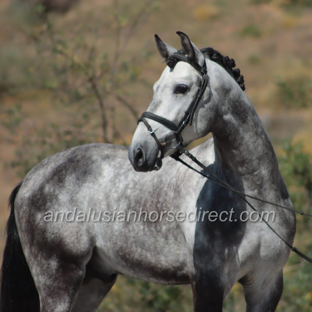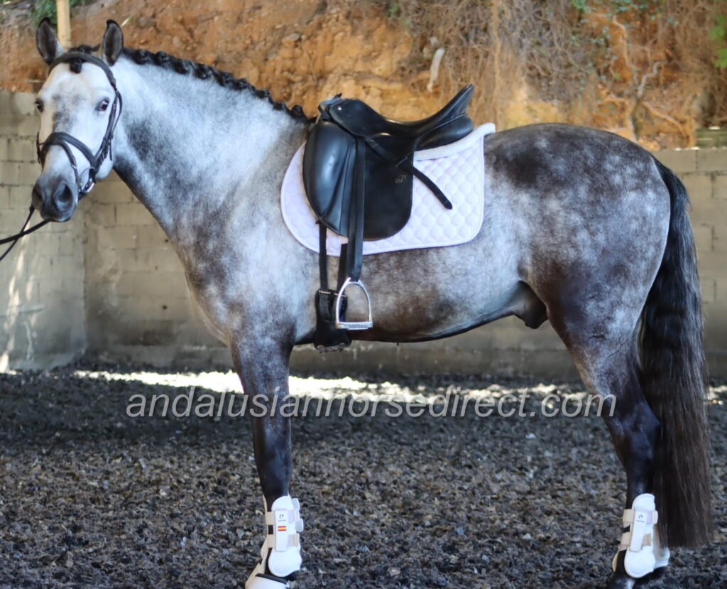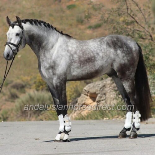 Resuelto SB IV 25/02/2021 is a stunning dapple grey PRE stallion, sired by the impressive dark buckskin Galante LX, with an interesting colour-breeding background.