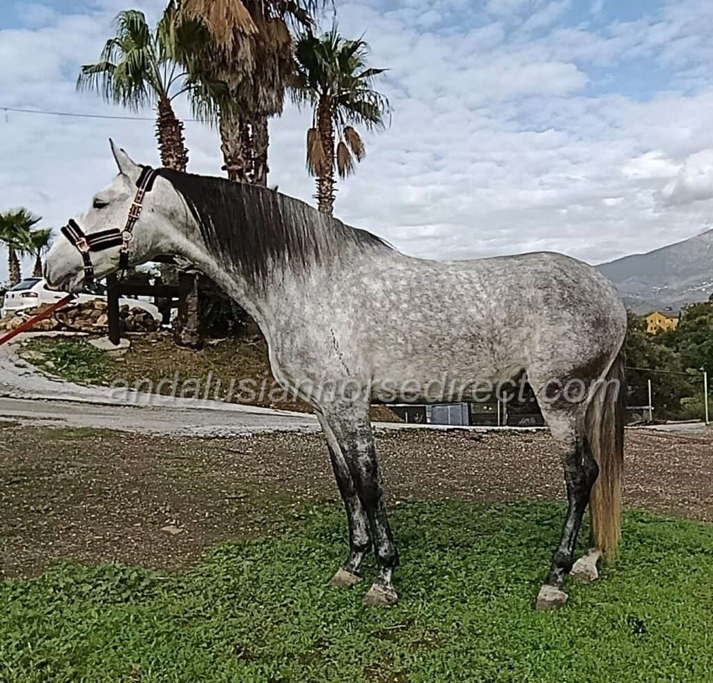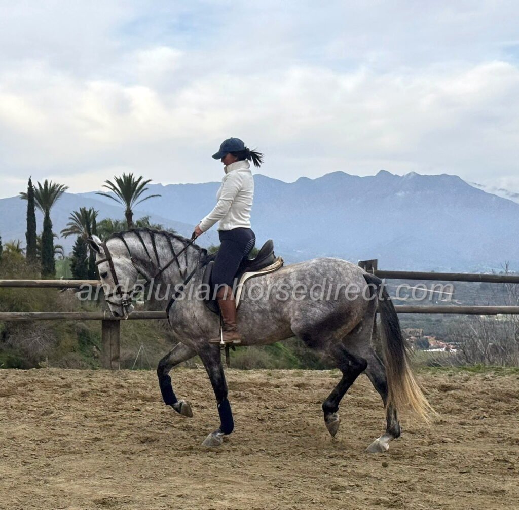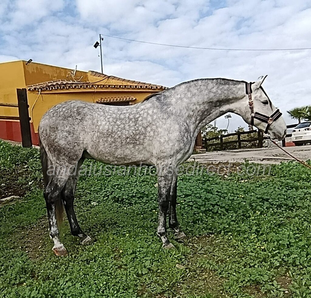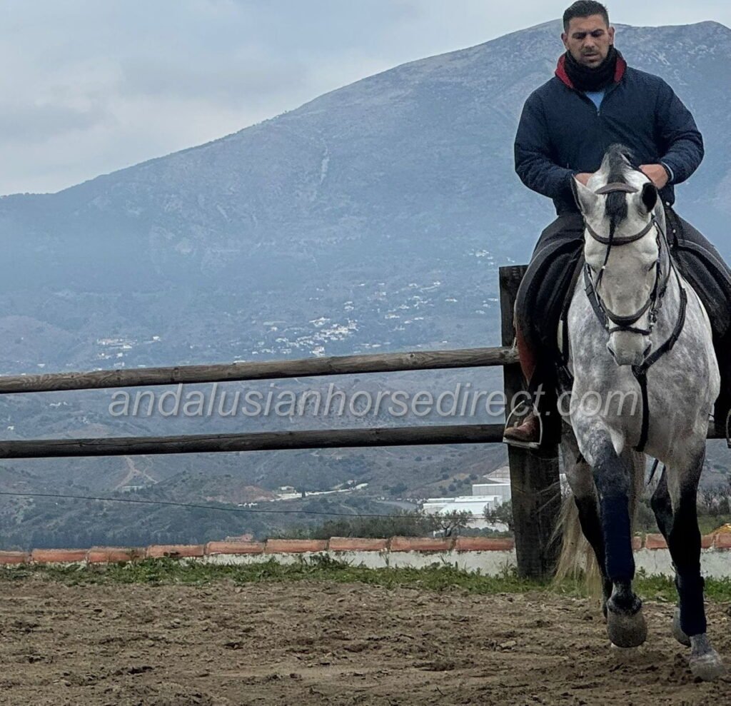 Salmarino Gal * 21/04/2021 is a picture-perfect PRE stallion with a truly classical baroque build and a kind, gentle temperament. He shows a solid basic training and is very easy and pleasant to ride.