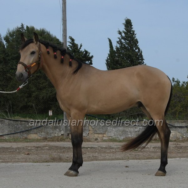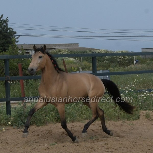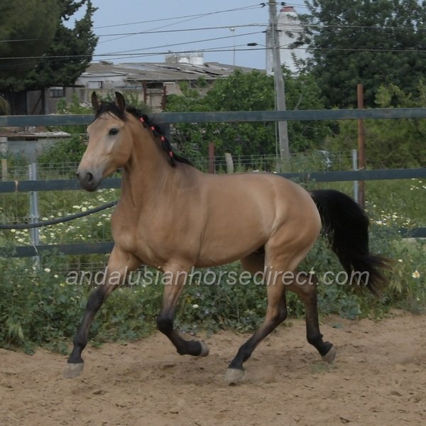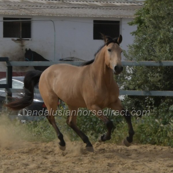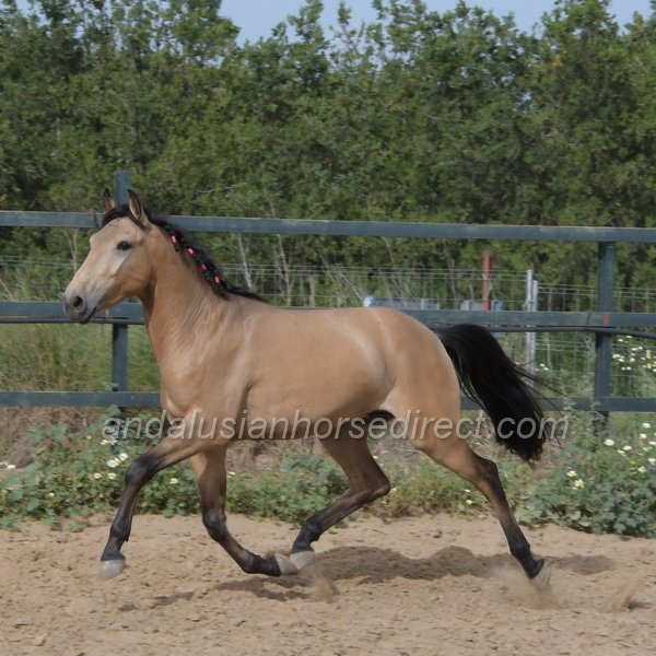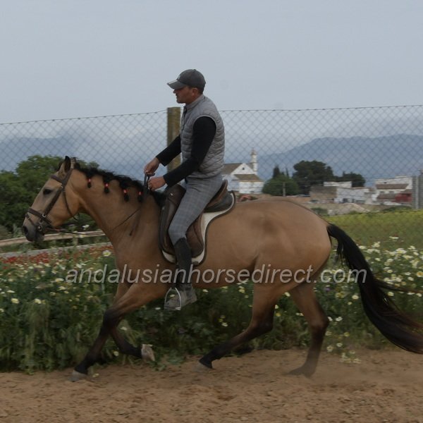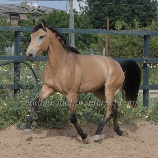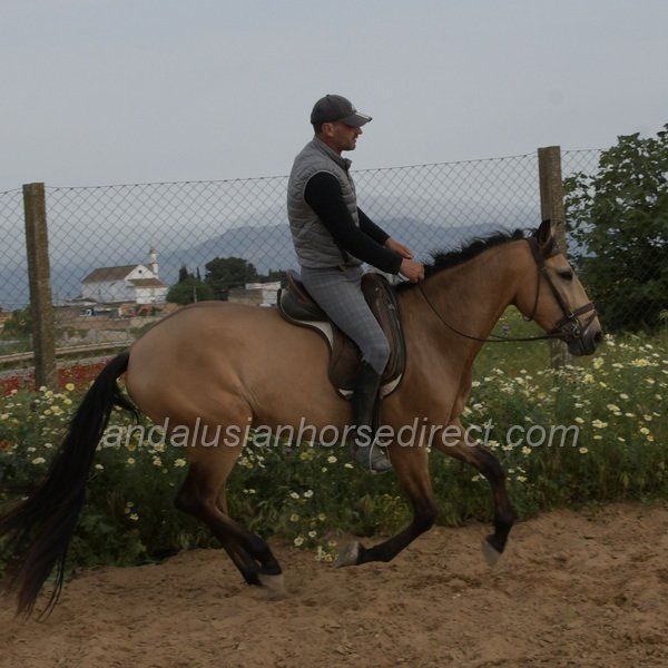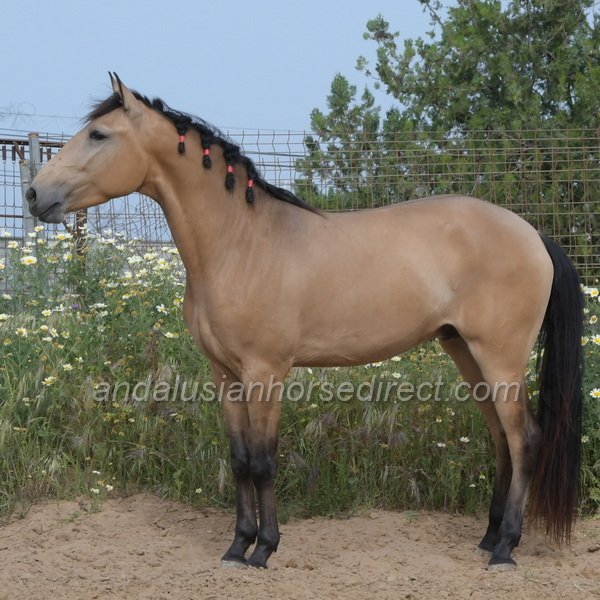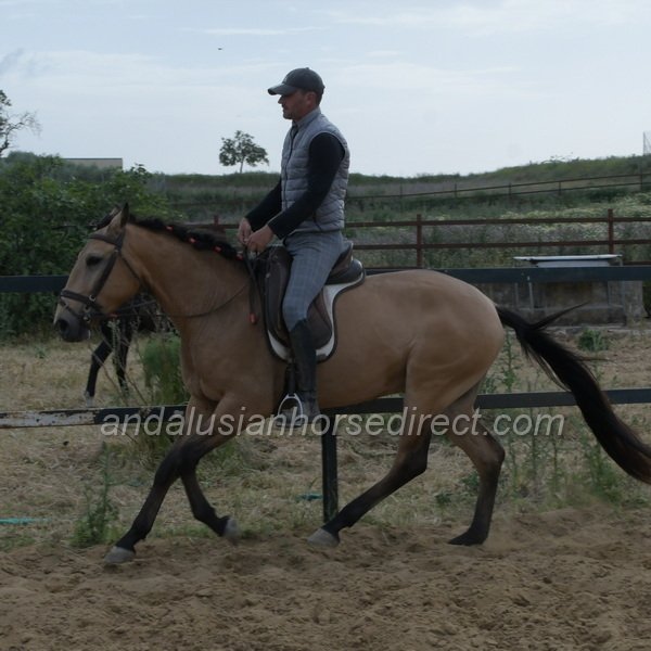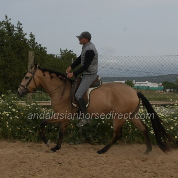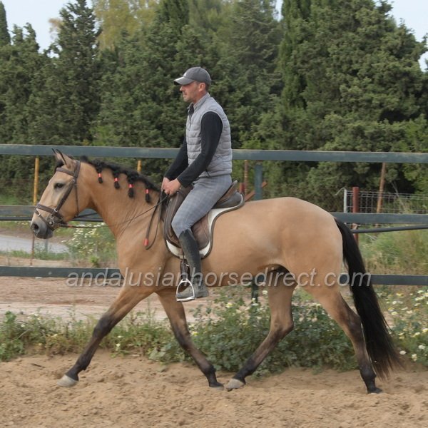 Sueño *28/03/2022 is a very beautiful dun gelding with a kind temperament, expressive movement, and especially extensive experience in hacking. He is correctly started under saddle with a solid basic education in the arena and shows himself relaxed and balanced in all three gaits. In daily handling, Sueño is a true gentleman, easy to groom, picks up his feet nicely, and behaves impeccably in every situation. In freedom, he impresses with powerful, expressive gaits and a clear joy of movement. At the same time, he remains mentally balanced and very people-oriented, a bright, charming horse with a loving nature.
