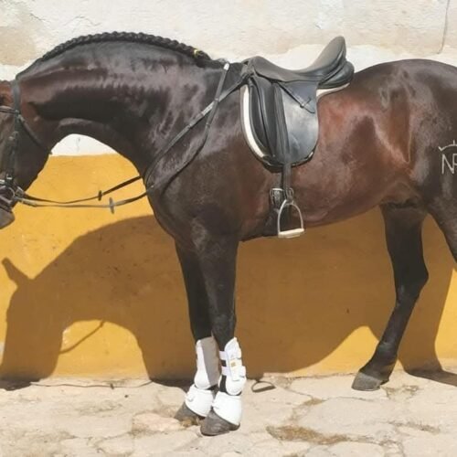 His father Hermoso NR is sired by Elite stallion Americano XXXIII (calificado, Mejorante, dressage breeding stallion, ELITE!), a successful dressage stallion, see his results including more pictures and videos competing here ) Americano is son of Corinto X http://www.yeguadasalvatella.com/es/caballos-pura-raza-espanola/sementales-pura-raza-espanola/item/646-corinto-x and grandson of the mejorante & Elite stallion Educado X https://www.ecujama.es/en/stallion-horses/educado-x/ (Guardiola). His mother Mulata Ma Soa is based in important old lines such as Marques de Velilla, Yeguada Indalo, Urquijo.